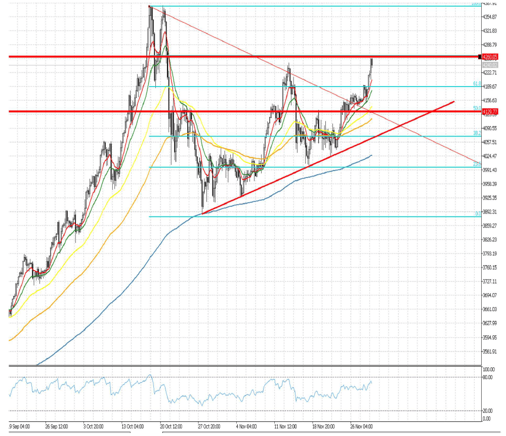 过去数天,金价出现反弹,今早执笔时更升穿11 月时的反弹高点约4245 美元,使市场情绪重要挑战历史新高4380 美元的可能。当然另一边厢刺激金价反弹的主因就是白银的做好,白银单周急升两升见接近58 美元的历史高位。